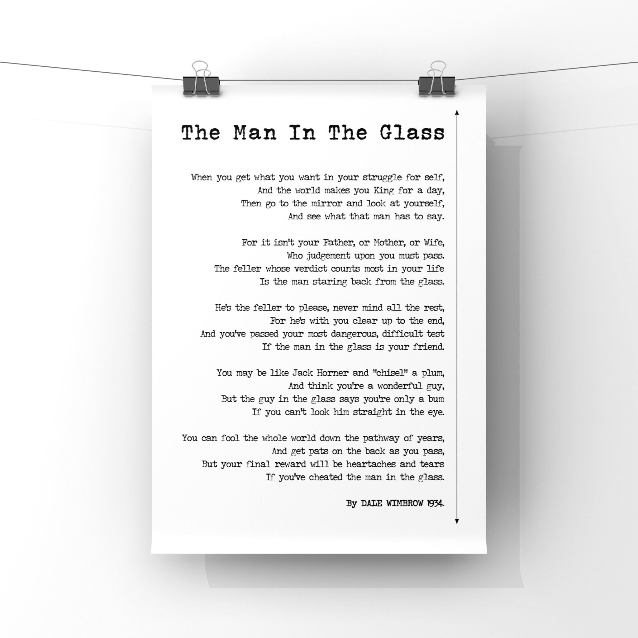 The Man In The Glass Poster Print By Dale Wimbrow The Guy In The Glass Poem Print Antique Paper Minimalist Style Unframed Poem from i.etsystatic.com We did not find results for: Check spelling or type a new query. The man in the glass. Maybe you would like to learn more about one of these?
